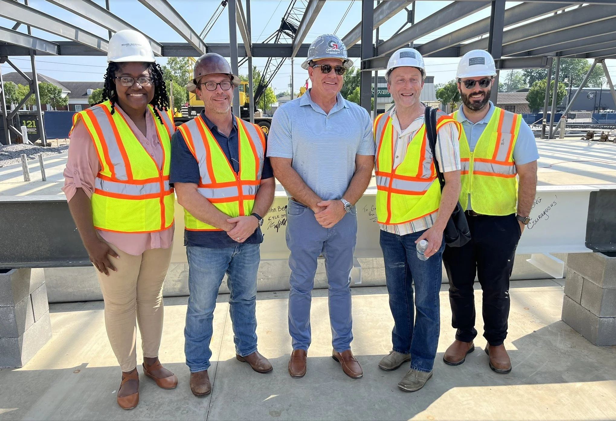 Mayor Craig Ford led the ceremony alongside the Williams Blackstock design team—architects Sean Whitt and Kyle Stover, and designers Kayla Bailey and John Beason—joined by the hundreds of skilled workers who have brought the new City Hall to life.